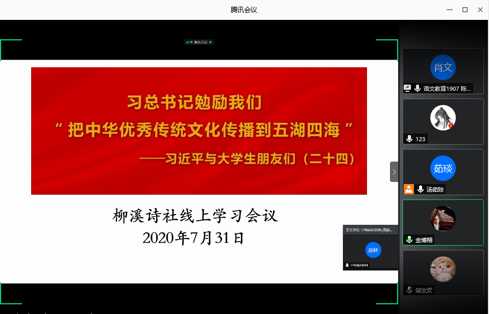 “‘一花独放不是春,百花齐放春满园’,我们既要热情地欢迎世界各国优秀文化在中国传播,更要积极推动中华文化走向世界,做传播中华文化的使者,增强中华文化影响力。”这是日前我校学子刘霜霜在柳溪诗社学...